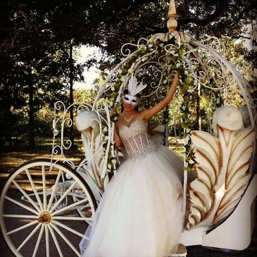 This one of a kind SPECIAL carriage is magnificent. Used for princess parties, weddings and special venues, our horse drawn Cinderella carriage is beautiful.