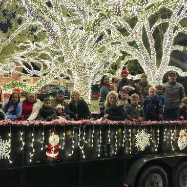 Our amazing Hay Rides seat 22 comfortably. Family parties, Fall and Holiday events love the hay rides. Christmas Light Tours enable the whole group to ride together.